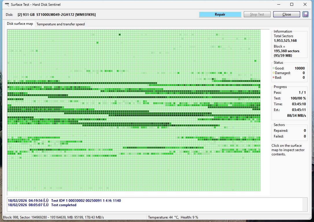 تست سلامت کامل بدون مشکل بعضی جاهای هارد کندی دارد